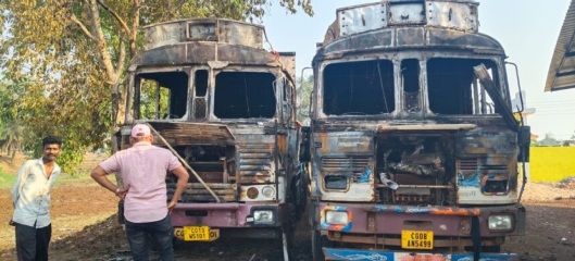 panchayattantra24.-बालोद। बालोद थाना क्षेत्र के ग्राम भोईनापार में देर रात अज्ञात बदमाशों ने कलामंच के सामने खड़ी दो ट्रकों को आग के हवाले कर दिया। आग लगते ही इलाके में हड़कंप मच गया और ग्रामीण मौके पर जमा हो गए। देखते ही देखते दोनों ट्रकों के केबिन, इंजन और कई कीमती सामान जलकर राख हो गए।