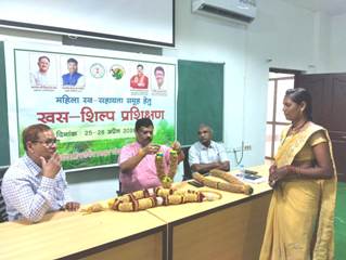 इस प्रशिक्षण का उद्देश्य धमतरी जिले में नदी किनारे खस की खेती कर रही महिला स्व-सहायता समूहों की आय बढ़ाना है। प्रशिक्षण में कुरूद विकासखंड के तीन गांवों के चार महिला स्व सहायता समूहों की सदस्य शामिल हुईं। इनमें ग्राम नारी से अन्नपूर्णा और जय मां सरस्वती समूह, ग्राम परखंदा से धान का कटोरा उत्पादन समिति तथा ग्राम मदरौद से वंदना महिला स्व सहायता समूह की महिलाएं शामिल रहीं। प्रशिक्षण के माध्यम से खस की जड़ों से मैट (चटाई), परदे, टोकरियाँ, पेन स्टैंड, छोटे बक्से, सजावटी सामान और ज्वेलरी जैसे उत्पाद बनाए जाते हैं।